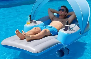 Motorized Pool Float with Canopy, Rechargeable Motorized Floats with Cup Holder – Dual Motor Heavy Duty Electric Lounger Raft for Adults, Pool, Lake & Party