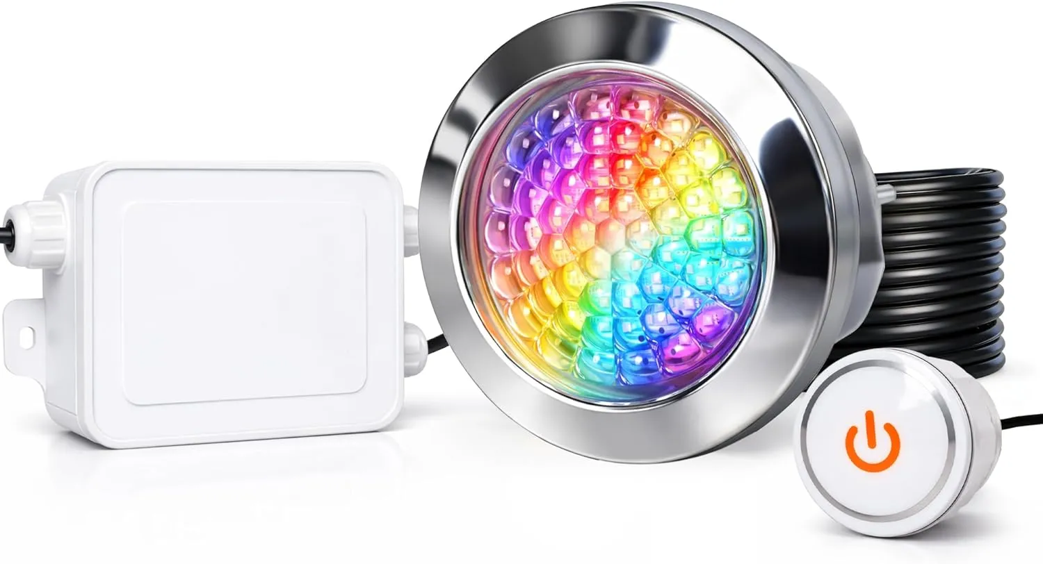 RGB Spa LED Light, 1.5-Inch Waterproof Multi-Color LED Light for Hot Tubs, Cold Plunge Pools, Ice Baths & Spas – IP68 Waterproof, 12V AC, with Touch Switch & Transformer