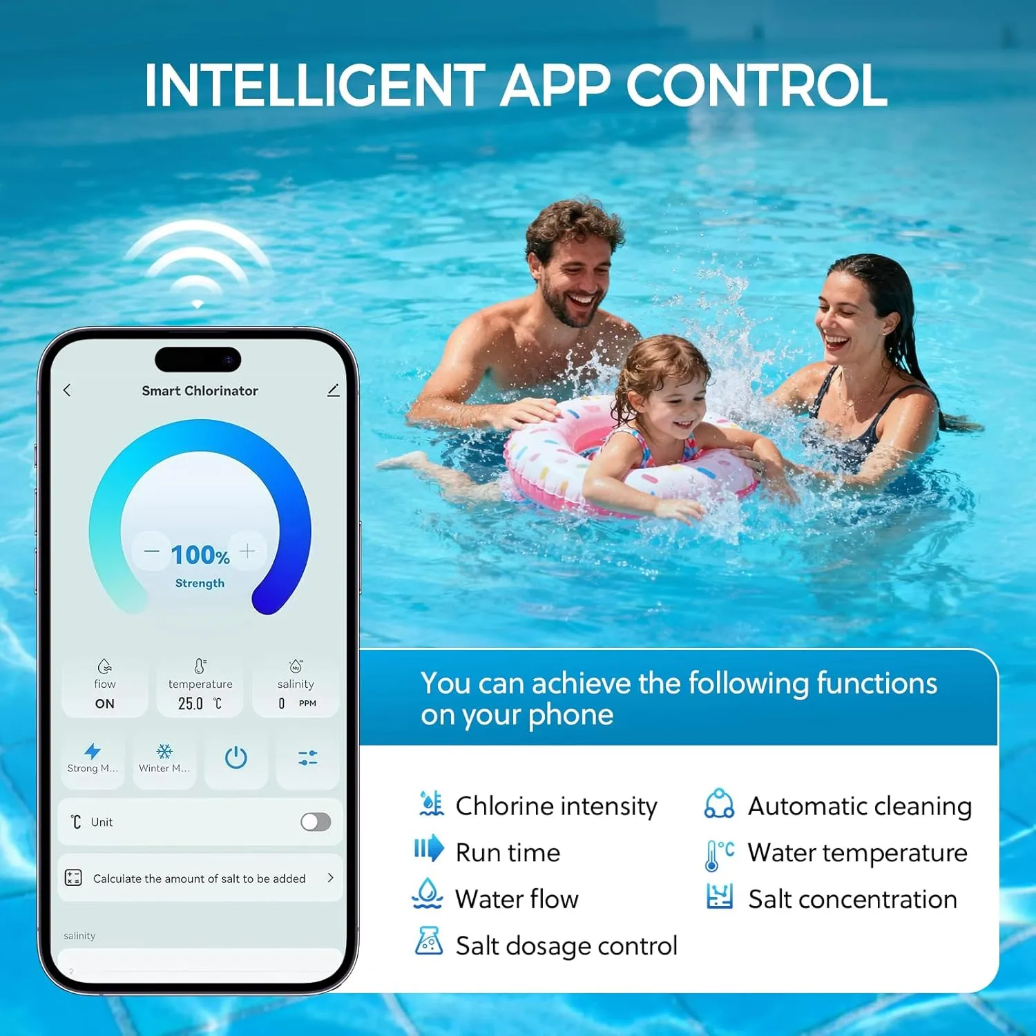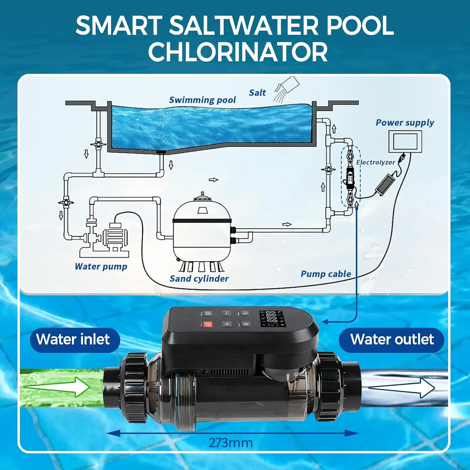 Salt Water Pool Chlorinator System – Smart Saltwater Chlorine Generator with Titanium Cell, FCC & ETL Certified, Wi-Fi & App Control, Digital Panel, Self-Cleaning, for Pools up to 40,000 Gallons